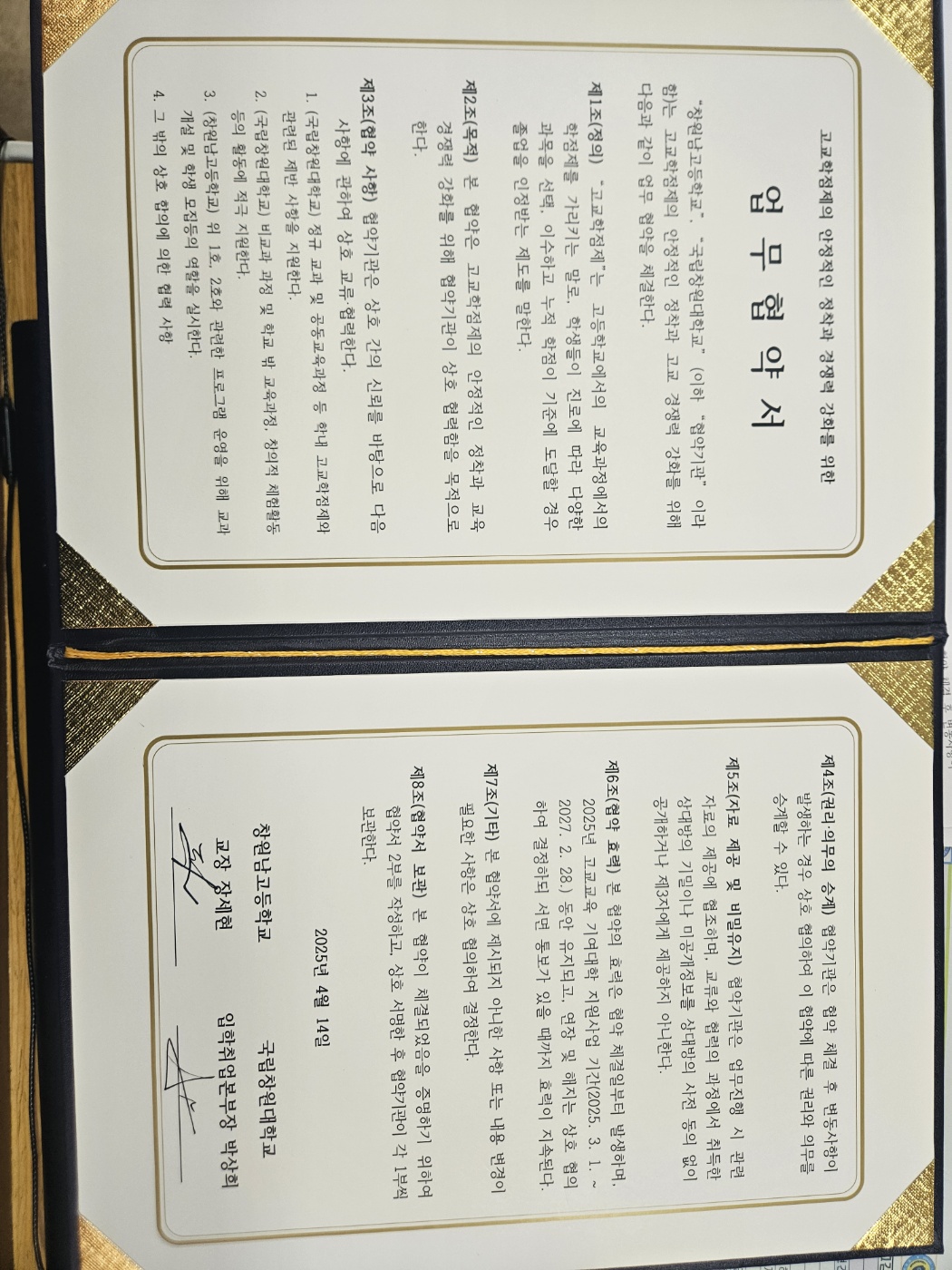 고교학점제의 안정적인 정착과 고교 경쟁력 강화를 위한 창원남고와 창원대학교와의 업무협약식이 있었습니다.